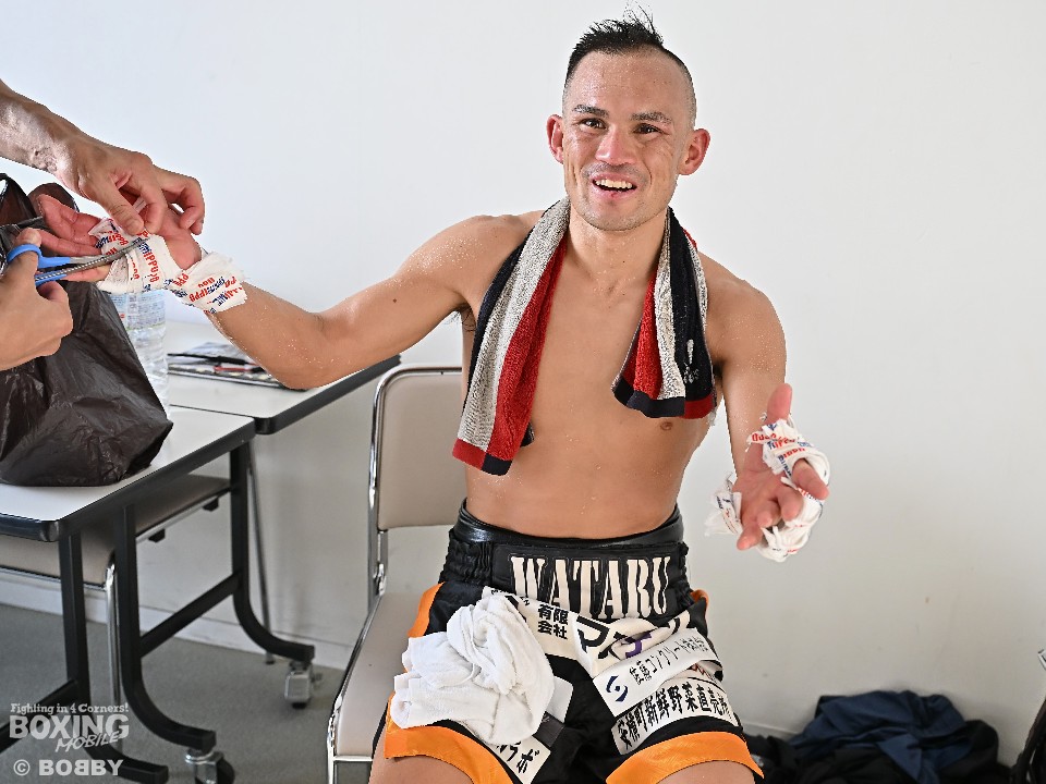 ゲームプランについては「僕はリーチが長いから距離離れていっぱいジャブついて右ストレート、アッパーを打つこと」流暢な日本語も披露。試合内容に関して、トレーナーに話を聞くと「ボディは色んな角度で練習している。うまくはまってくれた。倒せたからよかった。」と述べた。