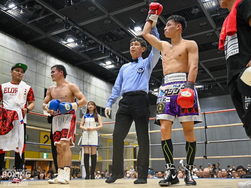 サウスポー大木がスピードの差を見せて、ジャブからワンツーをヒット。頭から突っ込んでくるマナンキルに対し、冷静さを保ちながら、出入りを活かしたボクシングでポイントを加点。大差判定勝ちで、メインイベントを締めた。