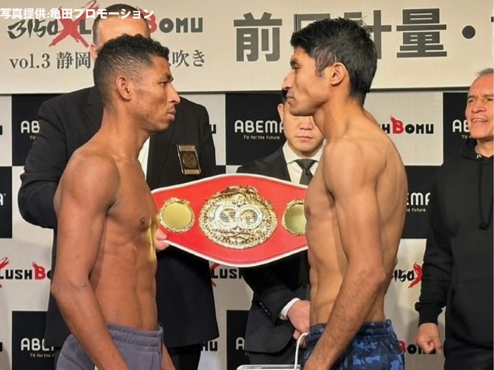 IBF(国際ボクシング連盟)スーパーフライ級王座決定戦の前日計量と記者会見が20日、静岡市内のホテルで行われ、同級3位のウィリバリド・ガルシア・ペレス(34=メキシコ)と同級4位のレネ・カリスト(29=メキシコ)が意気込みを語った。