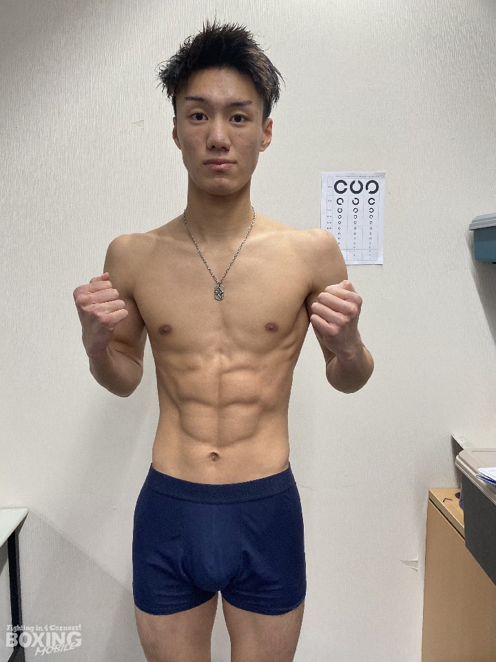 インターハイ、全国選抜大会優勝の大胡晴哉(おおご・はるや/18=吉祥寺鉄拳8)が13日、都内の日本ボクシングコミッション本部事務局で前日計量に臨んだ。