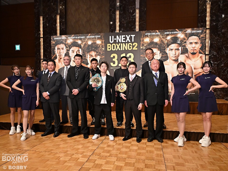 「U-NEXT BOXING vol.2」の発表会見が27日、都内のホテルで行われ、元世界2階級制覇王者の京口紘人(31=ワタナベ)が3月13日(木)、両国国技館で王者のアンソニー・オラスクアガ(26=米)に挑戦することが発表された。