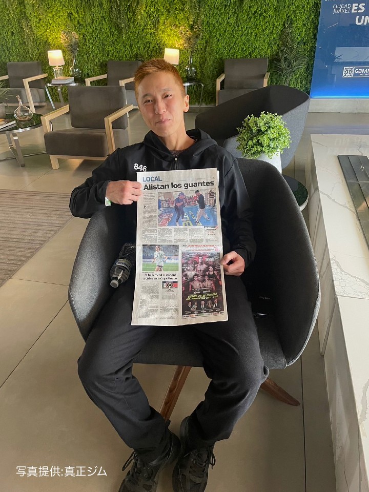 一昨日、シウダーファレス市内のパブリックジムで行われた公開練習では、シャドーを1ラウンド、ぬきの遠征に同行している井上孝志トレーナーを相手にミット打ち1ラウンドを、それぞれ披露した。