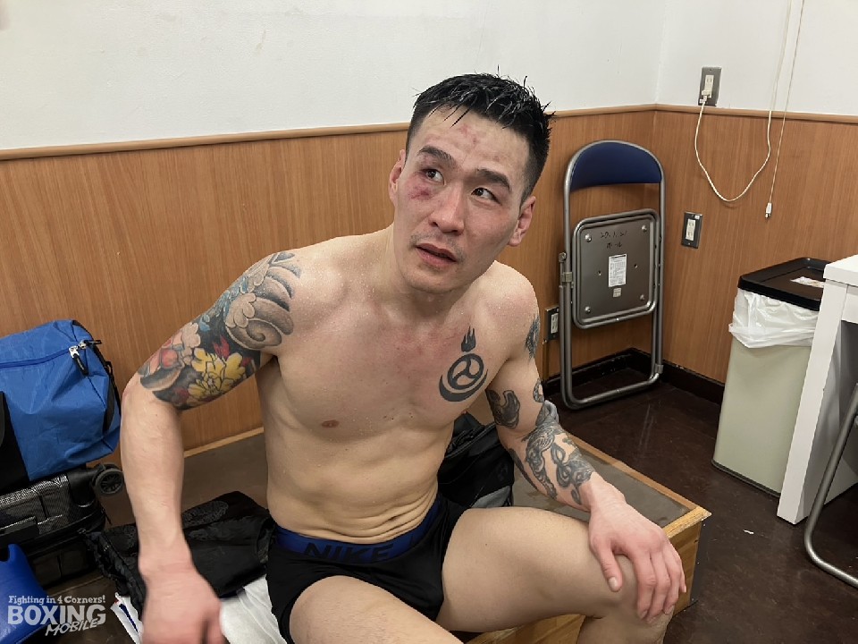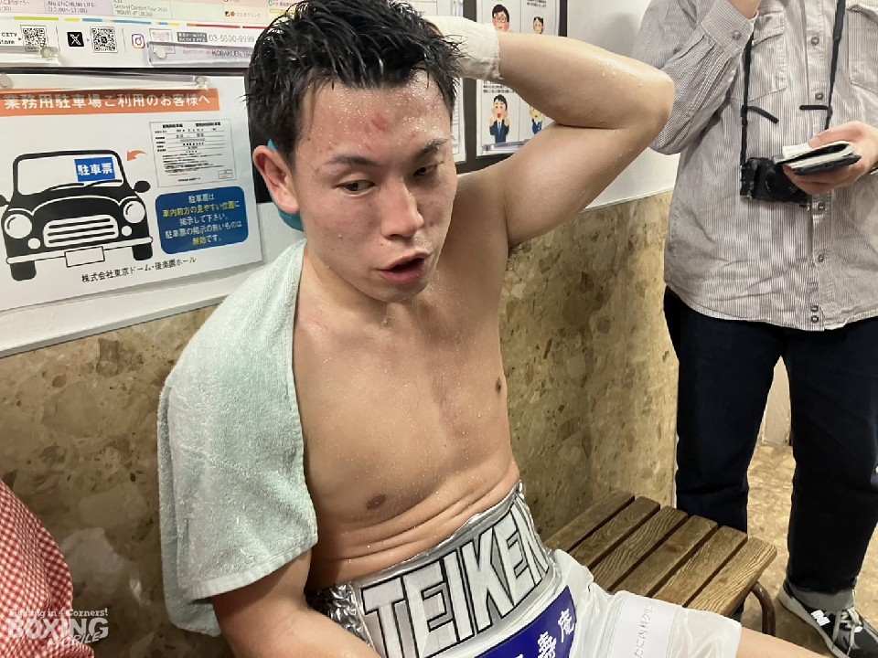 頭部を氷嚢で冷やしながら取材に応じた荒本は、「ちょっと相手のペースに乗ってしまって切り替えができなかった。パンチがあったので、被弾を警戒してむやみに打ち返せなかった」と勝利にも笑顔はなく、反省の言葉が口を突いた。