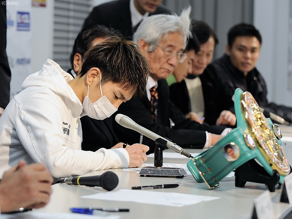 王者の印象を聞かれると「井岡選手はパンチも速く、目もいいのでディフェンスの研究をしてきた。」作戦を聞かれると「ファイターとして前に出て戦う。」と話し「相手(王者)を見ても不安はない」と自信を見せた。