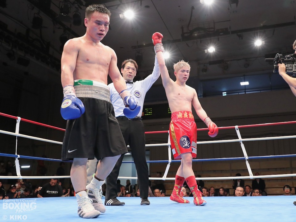 由良が丁寧にジャブを突きながら、左フックをヒットすると、左ボディ、打ち下ろしに右ストレートでペースを掌握。KO決着に期待が高まったが、打っても前に出てくるウーを仕留め切るまでには至らず。鼻血を流したウーだが、ニヤリとしながらジリジリと距離を詰めると、右フックで顔を弾き反撃。それでも由良は足を使いながら上手く戦い、8回には右ショートをねじ込んだ。