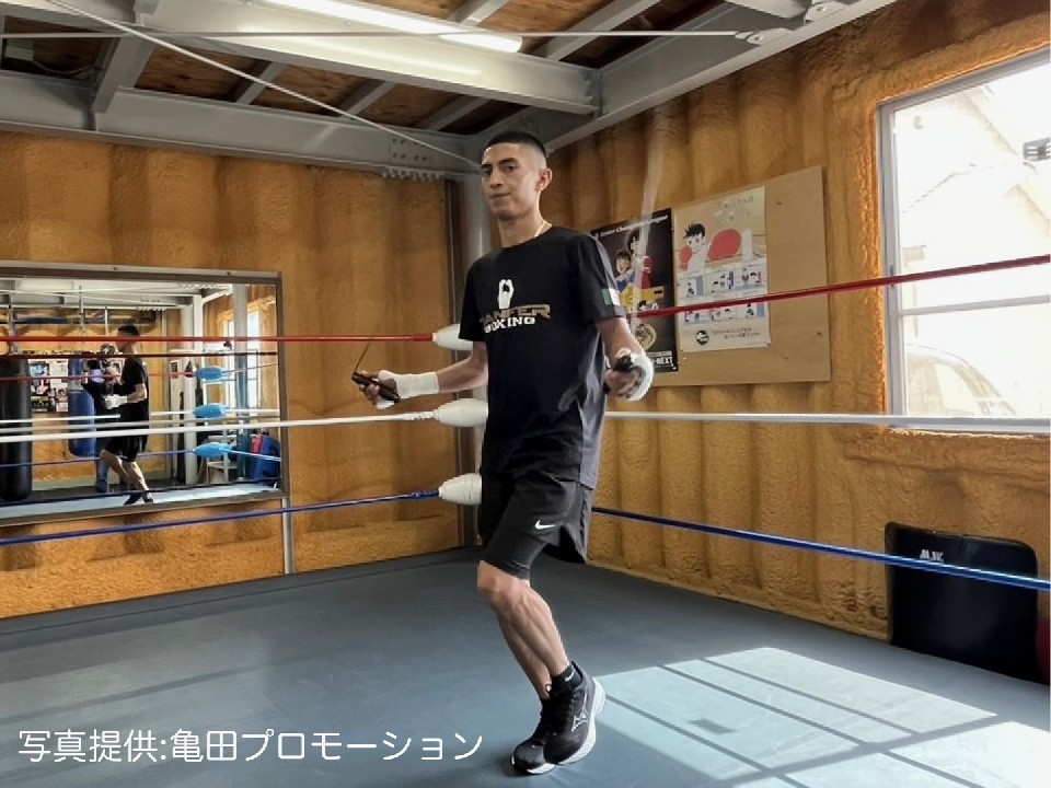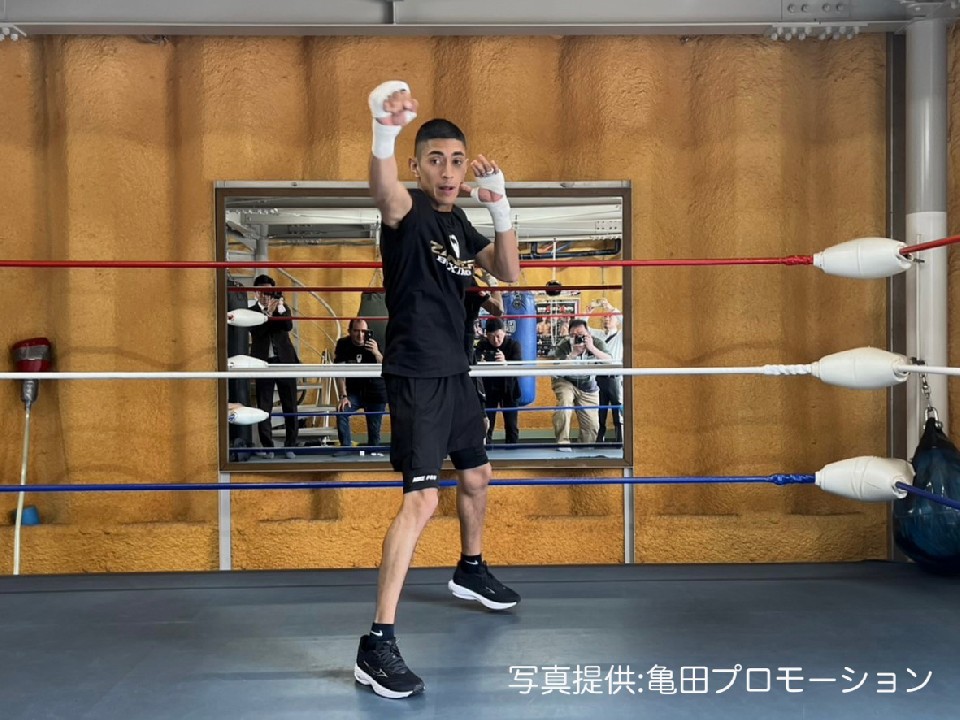 対戦相手の矢吹について、「パンチ力、スピード、攻撃力、どれも高いレベルで素晴らしい選手。実際リングの上で向き合ってみて、どういう選手か分かると思う。リングで感じてみてから作戦を決めたい」と、高く評価すると、この試合に向けて、「自分が住んでいるメキシコ州も標高は 2,200 メートルくらいだけど、試合2ヶ月前から標高3,000 メートルくらいの高地で50日間くらい合宿をしてきた。フィジカルトレーニングとスパーリングで最高の状態に仕上がった」と、長期間に渡る高地合宿で、万全の状態に仕上がっていることをアピールした。
