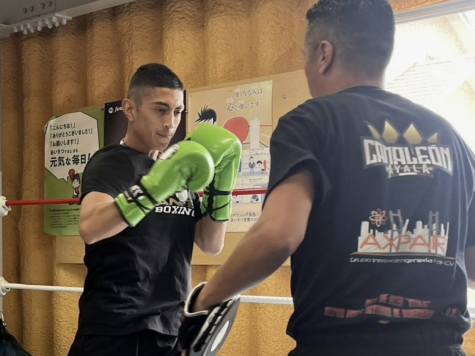 3月29日(土)、愛知県国際展示場で開催の「3150×LUSHBOMU vol.4」のメインイベントで行われるIBF(国際ボクシング連盟)世界フライ級タイトルマッチで、現IBF世界ライトフライ級王者の矢吹正道(32=LUSH 緑)の挑戦を受けるIBF世界フライ級王者のアンヘル・アヤラ(24=メキシコ)が25日、東海市内のトコナメジムで練習を公開し、練習前に行われた会見で記者の質問に答えた。