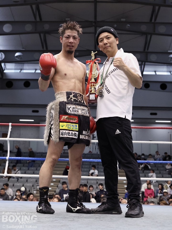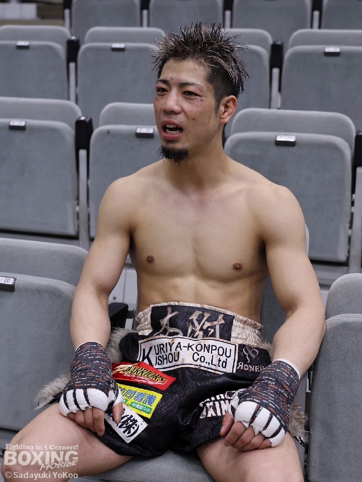 初のメインイベンターを務めたことについて聞かれると「最初メインイベンターと聞いた時は、僕なんかが良いのかと驚いたが、あまり気にしない性格なので普段通り行こうと思った。ただ、試合中ポイントで勝っているのは分かっていたが、このまま終わるのは違う。最終回、倒されても良いから打ち合おうと思った」と、プロとしての覚悟を見せた。