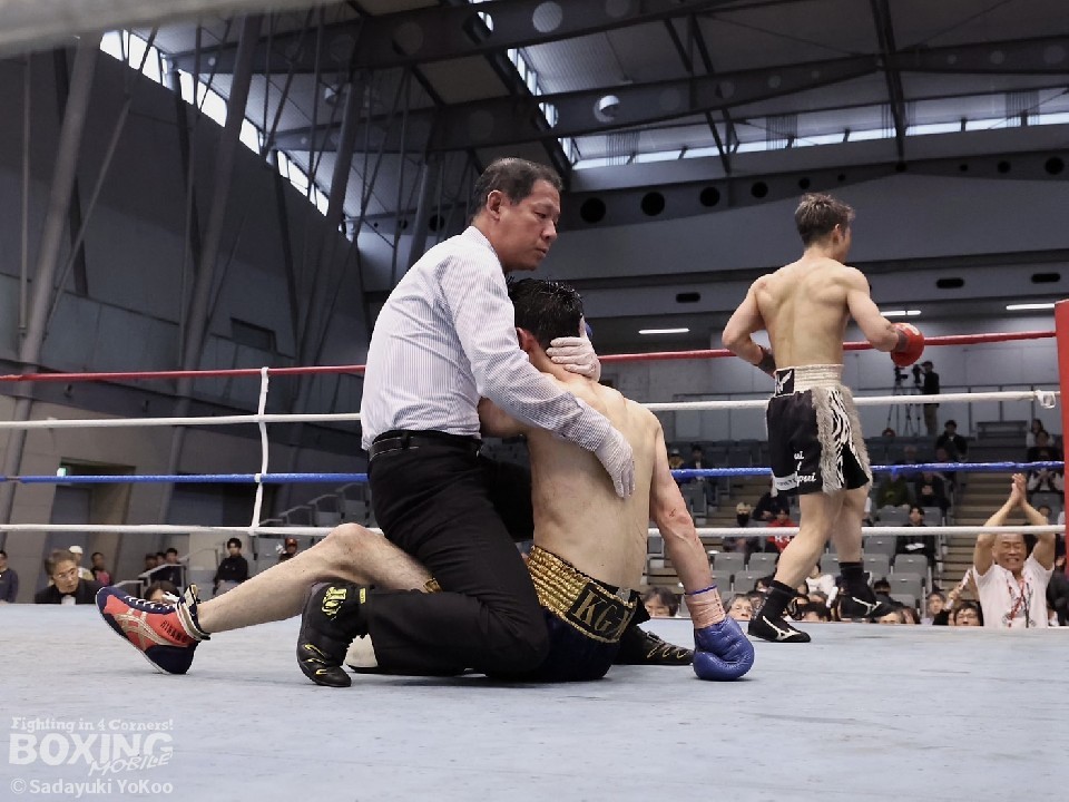 試合は、序盤からペースを握った木附が平野を攻め立てる。平野はリーチを活かし、要所でパンチを返すも、木附の回転力に上回られた。木附は、最終回このままポイントアウトすることも出来たが、倒しに行く姿勢を見せ、最後はパンチをまとめタフな相手に手を焼きながらも、TKO勝利を奪った。平野も最終回、逆転しようと勝負に出たが、力は及ばなかった。