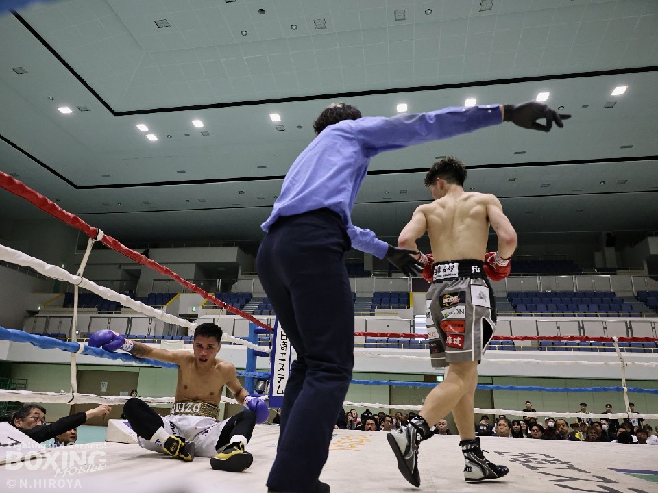 初回から伊藤がジャブを軸にペースを掴むと、クイーゾにロープを背負わせ、連打をまとめた。左を上下に散らして、ワンツーアッパーのコンビネーションで優勢を印象づけ、ボディで削るとジャブからロングの右で、クイーゾを吹っ飛ばすようなダウンをゲット。レフェリーが10カウントを数え上げるも、クイーゾは立ち上がらず、伊藤が華麗なKO劇で会場を盛り上げ、メインイベントに花を添えた。