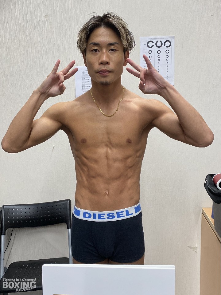 続けて計量に臨んだ稲葉は、リミットの51.5sでパスした。4月3日に勝利してからわずか1ヶ月半での試合となる稲葉だが、「格上だがこんなチャンスはない」とボクシング人生最大のチャンスに気持ちを高めると、「ここまで悔いなく練習してきた。チームを信じて楽しんで戦う。気持ちでは負けません!」と拳を握りしめた。
