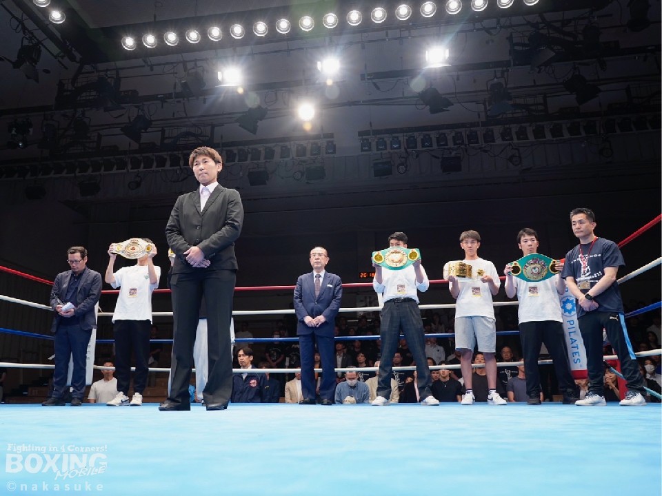 マイクを握った三好は、「たくさん負けたのに、こんなにたくさんのベルトを獲ることができたのは、チャンスを作ってくださったジムや応援してくださったファンのおかげ。家族にはいつも支えられてきました。苦しかったこともあったが、楽しいことの方が多かったボクシング人生でした」と笑顔で語った。