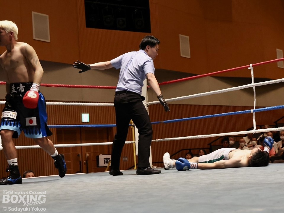 第4試合68.0s契約4回戦では、山中圭市(31=中日)と小田心斗(23=杉田)が対戦。逆転KO決着に、会場が騒然とした!