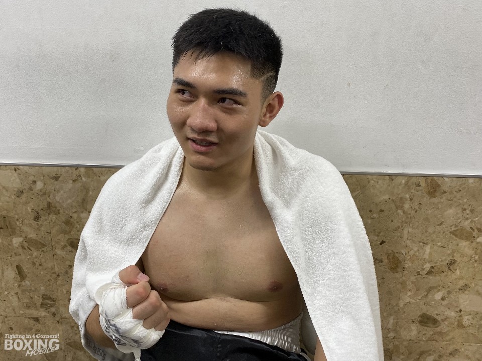 会心のKO勝ちを飾ったファンは、「KOは狙っていなかったが、右フックで効いたのがわかったので、一気に仕留めにいった。勝ってまだ高ぶっている」と興奮冷めやらぬ様子で話した。