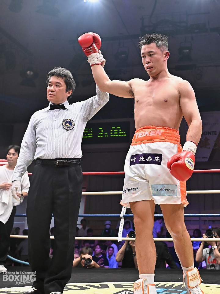 序盤は、左フックや左ボディを狙いながら出入りを意識した荒本がリード。中盤もスピードや緩急を駆使し、左ボディやワンツーで攻める一方、中田も右フックや反撃を見せ、激しい打ち合いに。荒本は終盤、やや集中力を欠いたものの、判定勝利でデビューから3連勝を果たした。