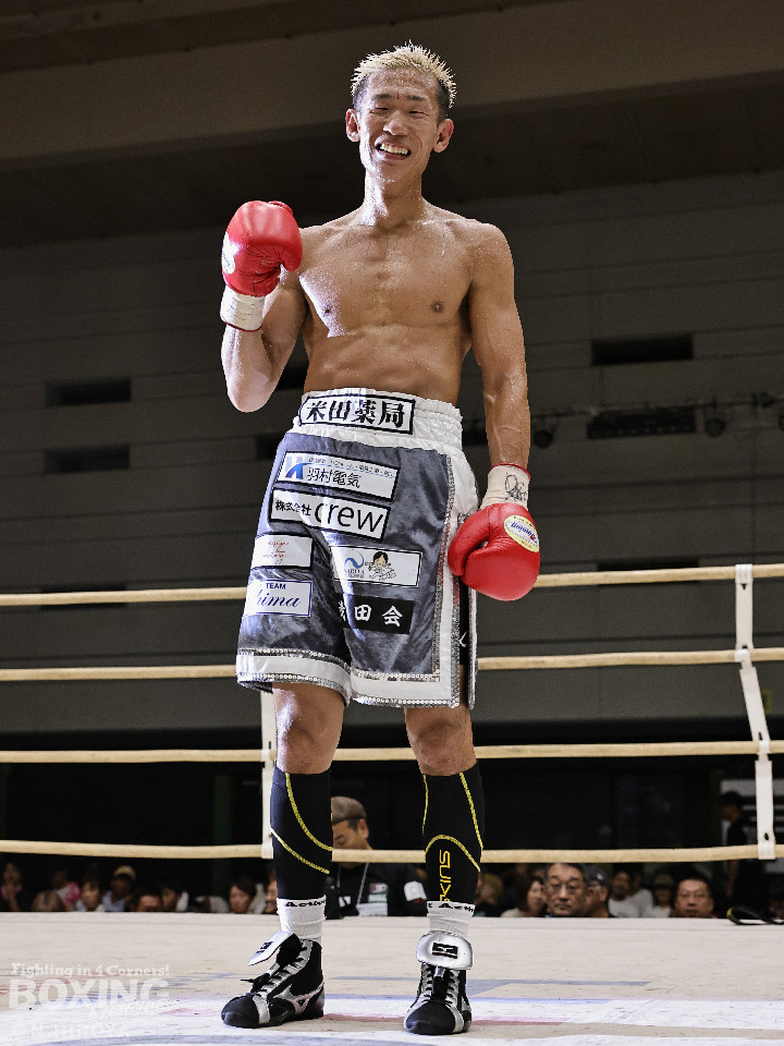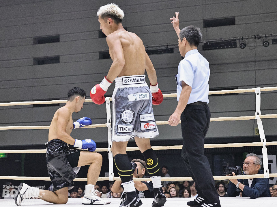 福井は2回に右ショートでダウンを奪い、ペースを掌握。その後は強引に前に出る酒本に対し、福井は右クロス、左ボディで迎え撃ちポイントを連取。ジャブからじっくりと攻めて、最後まで主導権を渡さなかった。