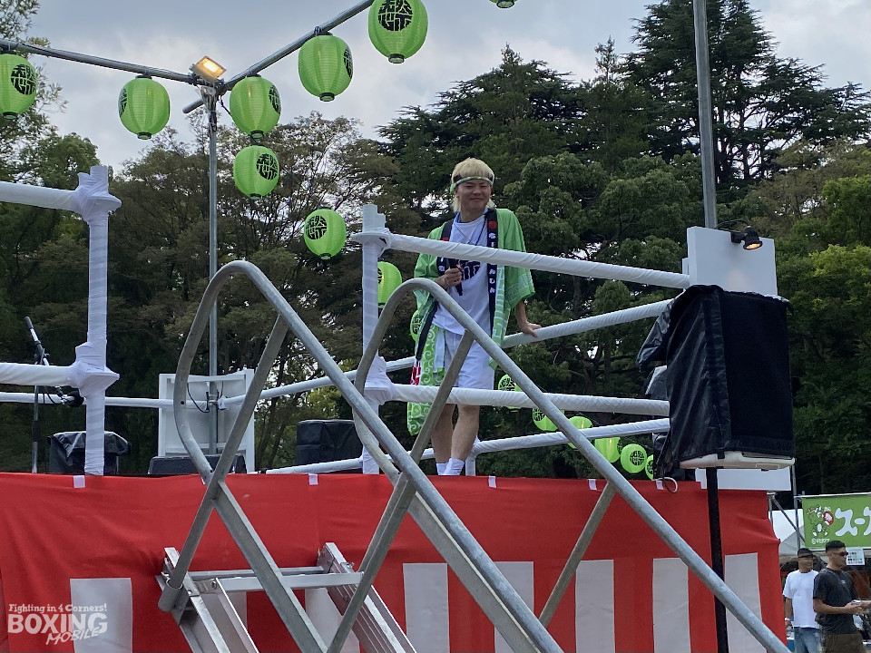 那須川は、最初から最後までフル参加して祭りを盛り上げ、地域住民やファンとの交流を深める。