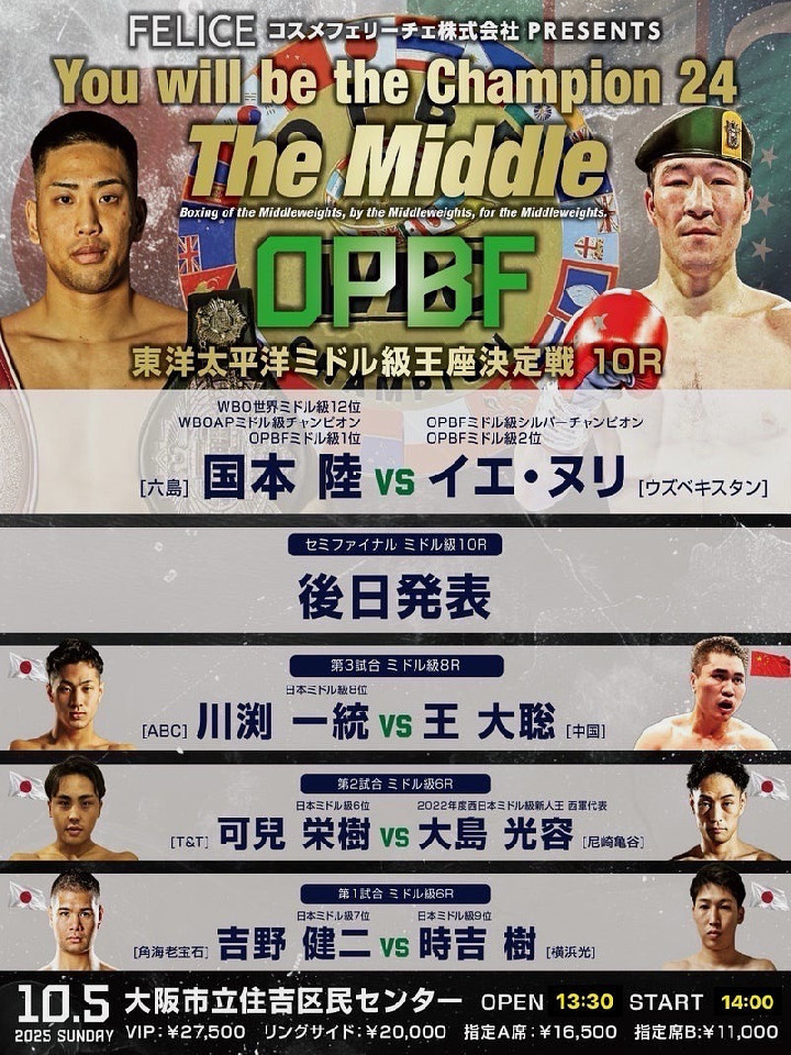 日本ランカー同士による上位対決であり、今後の日本タイトル戦線やOPBFタイトル戦線に大きな影響を与える一戦となりそうだ。