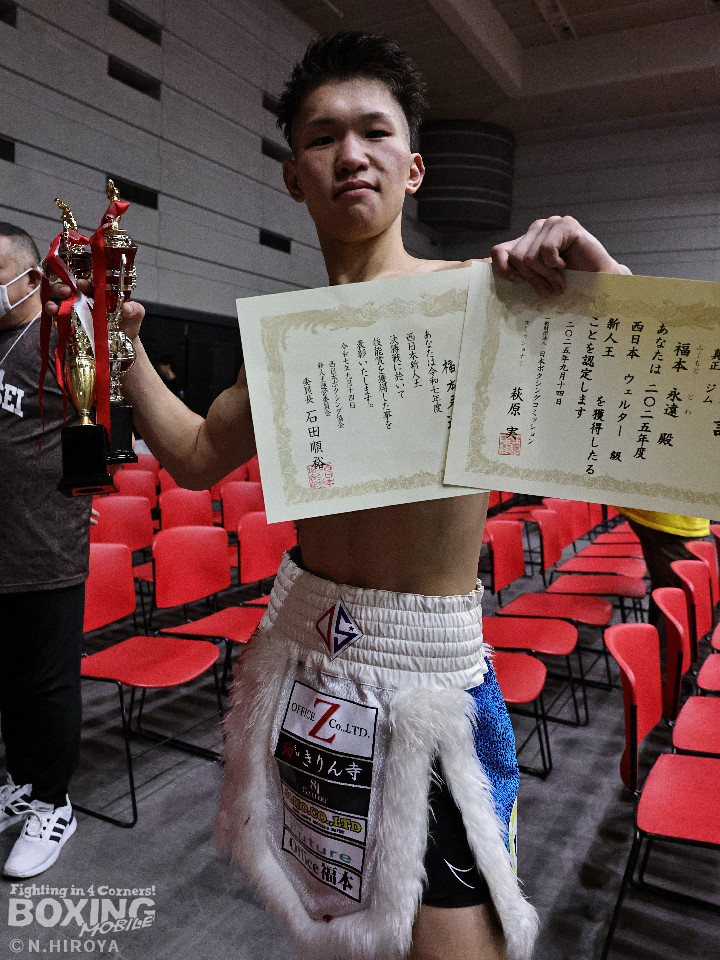 技能賞に選ばれたのは、ウエルター級西日本新人王、福本永遠選手(21=真正)