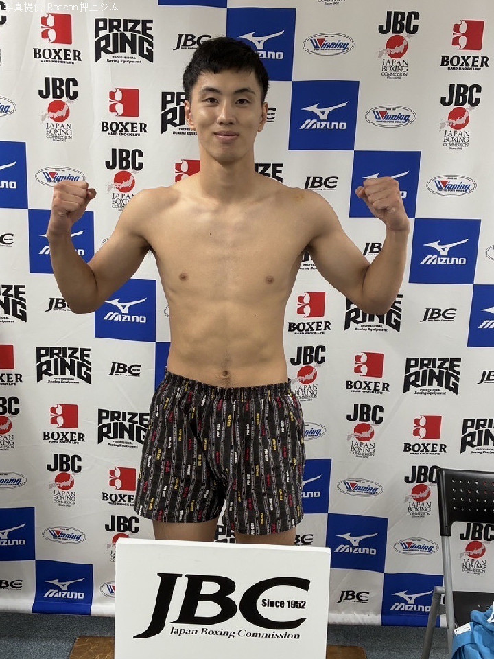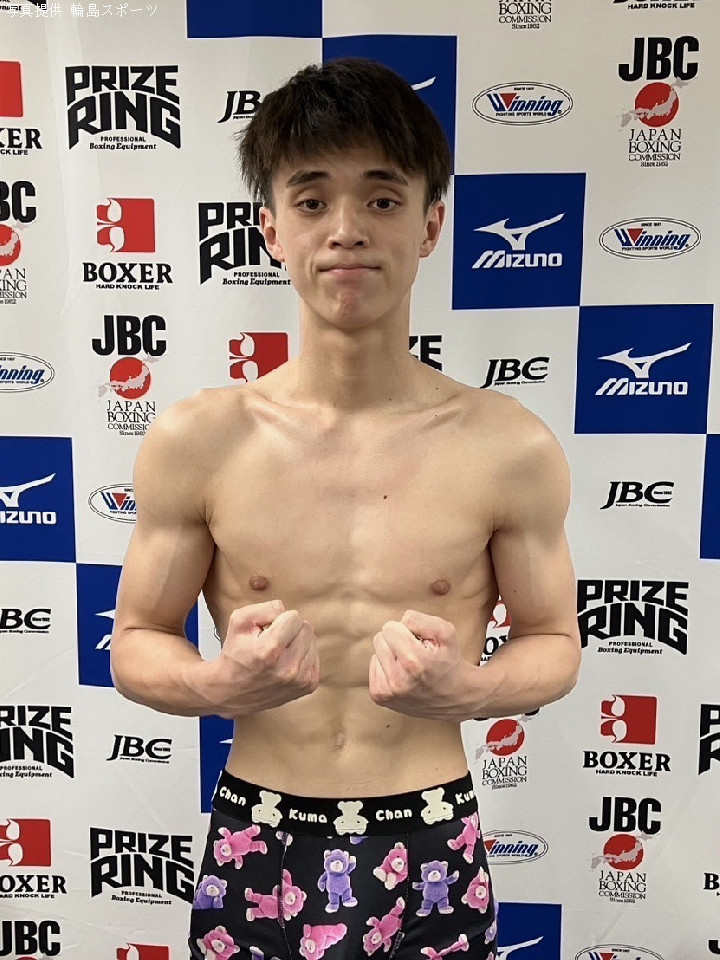 磯谷はリミットの63.5kgでクリアし、「前戦と違って、自分より小さい相手でやり慣れているので、いつも通り自分のボクシングをして勝ちます」とコメント。※磯谷は元世界王者・輪島功一氏の孫で、磯谷大心の弟。アマチュアキャリアを持つテクニシャンタイプ。