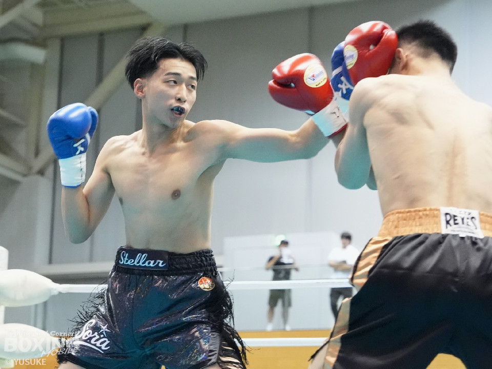 初回から雨宮が鋭いジャブとワンツーで主導権を握り、和地は距離を詰めてボディ攻撃で応戦。中盤は、和地が前に出てプレッシャーをかけたが、雨宮は冷静に距離を保ち、キレのあるパンチを差し込んだ。最終回も互いに持ち味を発揮した攻防となり、判定へ。終始、有効打を積み重ねた雨宮がデビュー戦を判定勝ちで飾った。