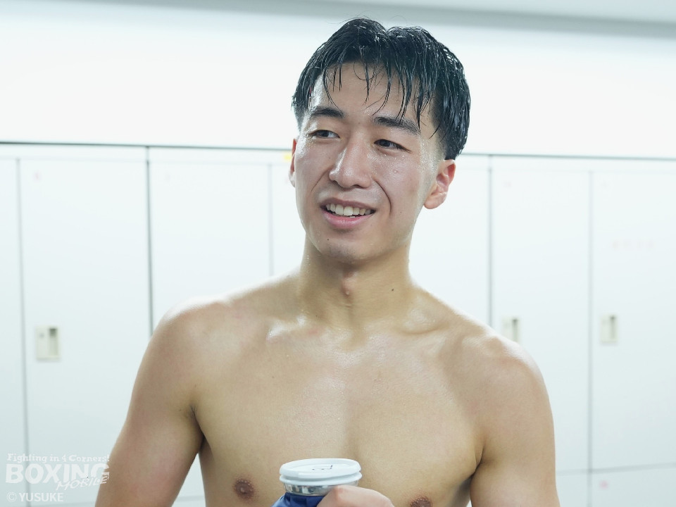 熱戦を制し、デビュー戦をTKO勝利で飾った大谷真生(25=土浦)は「1ラウンド目に、ガンガンに攻め込まれ『まずい』と思ったが、2ラウンド目以降からインファイトに切り替えたことで、自分のペースに持ち込むことができた。最後のパンチは感触はなかったが、レフェリーが止めてくれて安心した」と振り返った。続けて「パンチをもらいすぎたので、ディフェンスを見つめ直し、次戦は綺麗な顔で勝ちたい。会長に組んでもらった試合をしていく」と反省を口にすると、次戦への意気込みを語った。