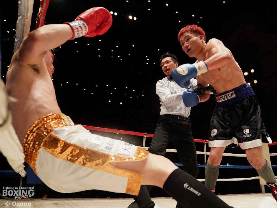サウスポー豊中が初回からワンツーで仕掛けると、右フックでダウンを奪い流れをつかむと、その後も前へ出る姿勢を崩さず、攻撃の手を緩めなかった。4回には、大峯の反撃に遭いながらも冷静に対応。5回に連打で2度目のダウンを奪い、最後は左ストレートで決着をつけた。