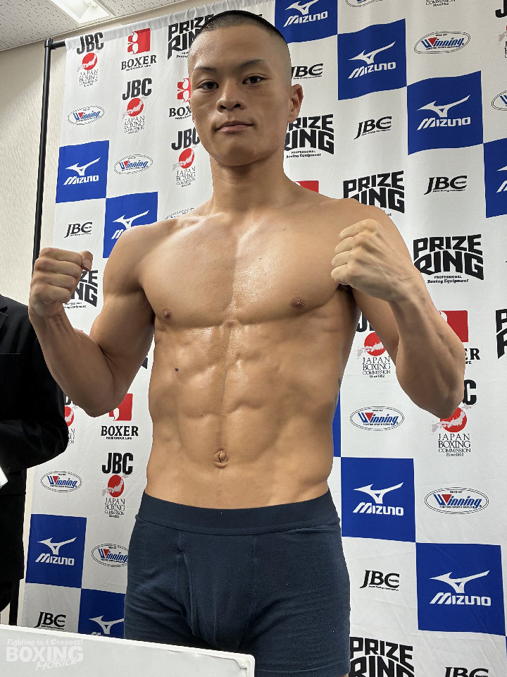 フェザー級リミットを400g下回る56.7kgでクリアした友良は、「やはり身長は高いと思った。お互いに倒しに行くと思うので、KOを狙っていく。何が何でも落とせない試合」と強気のコメント。また、同じ真正ジムで、従姉の夫でもある大谷新星(24)の存在についても触れ、「ここをしっかり勝って、新星君につなげる」と意気込みを語った。