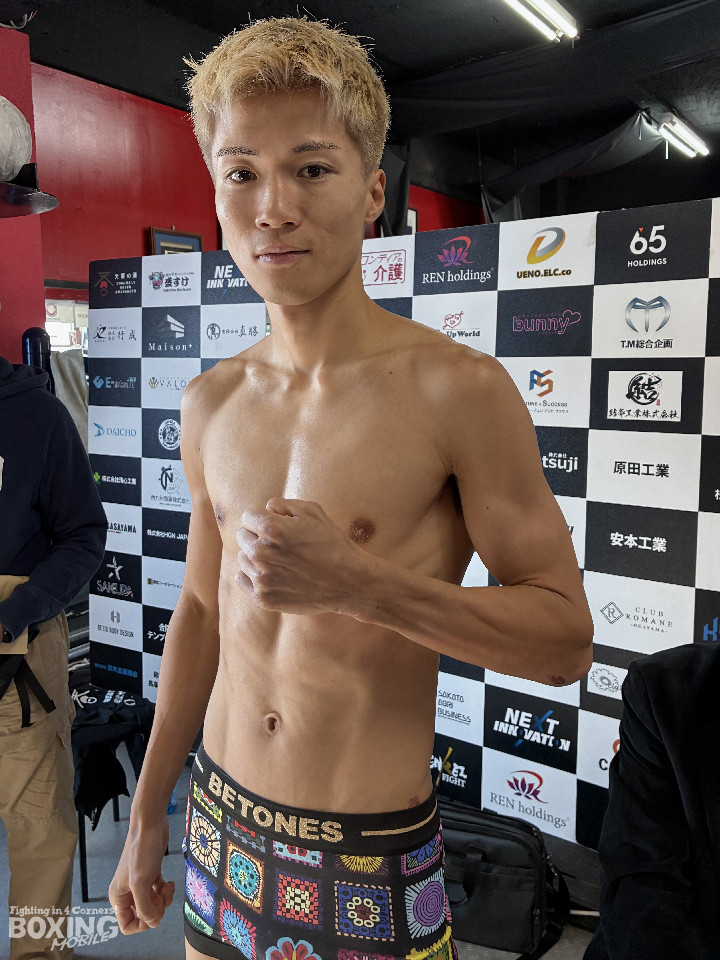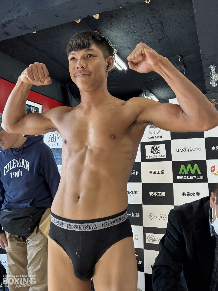 約1年ぶりのリングに立つ前田は、スーパーフェザー級リミットを300g下回る58.6kgで計量をパス。「年々、自分らしいボクシングができていなかったので、父と取り組んでもう一度、自分のボクシングを立て直した。打たせずに打ち、一瞬の隙を逃さないカウンターを見てほしい。瞬き厳禁です」と、得意のカウンターでの返り討ちを誓った。
