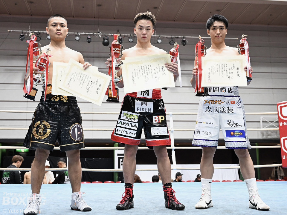 全試合後には表彰式が行われ、三賞(MVP、敢闘賞、技能賞)が発表。勝者は12月20日(土)、後楽園ホールで行われる全日本新人王決定戦へと駒を進める。