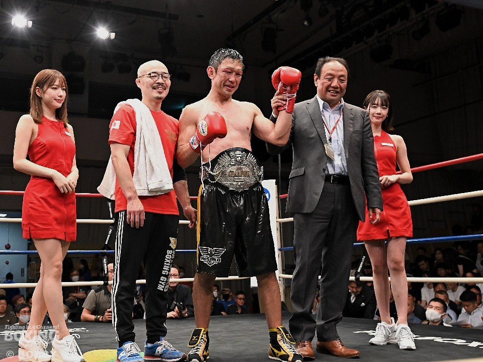 それでもリングを降りることはなかった。2022年11月、タイトル初挑戦にして日本スーパーウェルター級王座を奪取。38歳1ヶ月での戴冠は、日本王座初奪取最年長記録という快挙だった。その後、3度の防衛に成功し、名実ともに王者としてリングに立ち続けた。