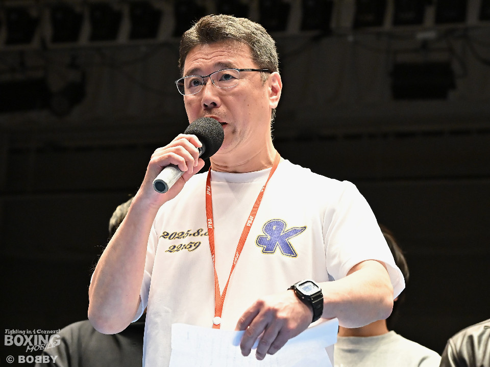 M.Tジムの村野健会長は、神足さんとの思い出と現在の取り組みについて語った。「昨年8月にタイトルマッチをさせていただき、素晴らしいファイトで引き分けでした。神足君の意思を継いで、同僚や後輩たちが真摯にボクシングに向き合っている。そして、少しでも事故から守りたいという気持ちで対策を講じ、試合に臨ませています。本日は追悼を込めて引退式を行わせていただきました」。
