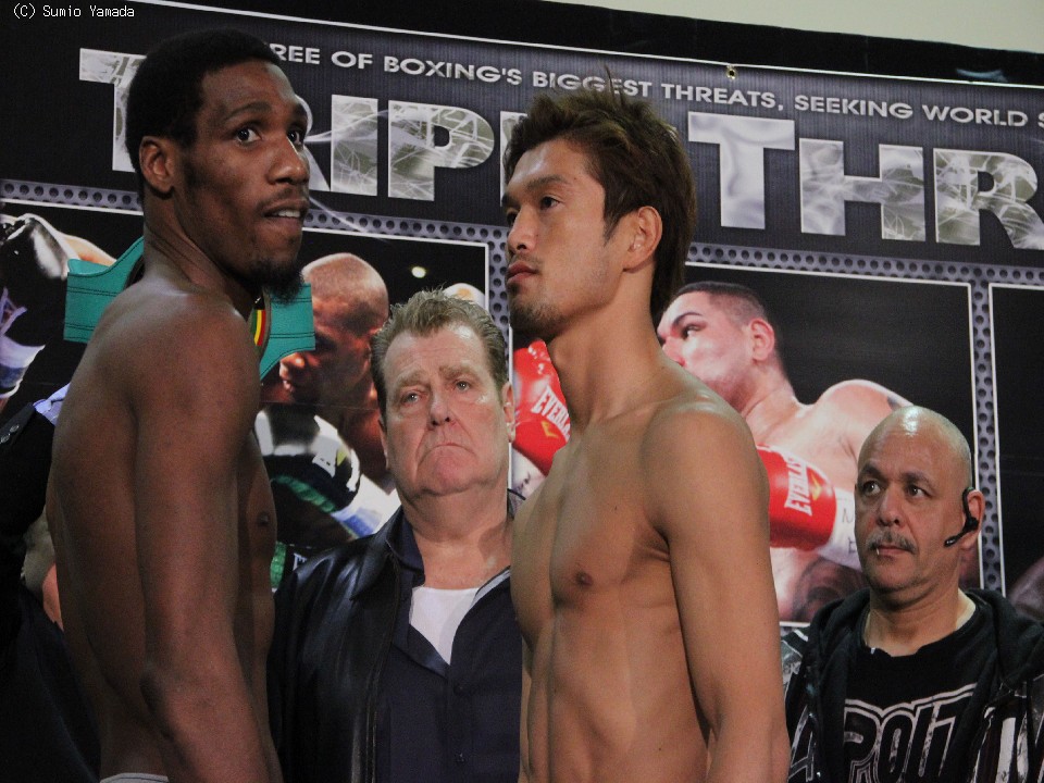 石田が186センチ、ウィリアムスが185センチと、スーパーウェルター級〜ミドル級にかけては群を抜く長身の両者。試合前日の公式計量では石田が155ポンド(約70.3キロ)、ウィリアムスが153.5ポンド(約69.6キロ)だった。ちなみにリーチは石田の184センチに対しウィリアムスは208センチもある。