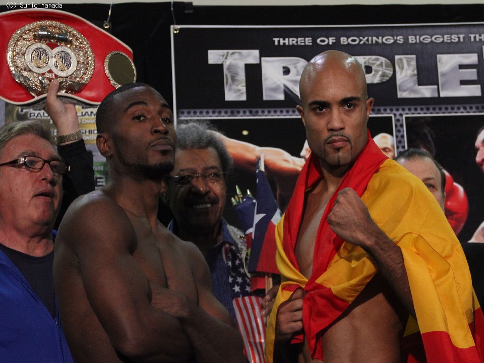 セミ扱いのIBF世界ライトヘビー級タイトルマッチに出場する王者タボリス・クラウド(米)はリミットちょうどの175ポンド(約79.3キロ)、挑戦者のガブリエル・カンピージョ(スペイン)は173.5ポンド(約78.6キロ)だった。