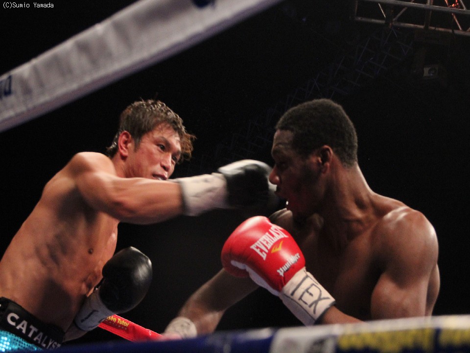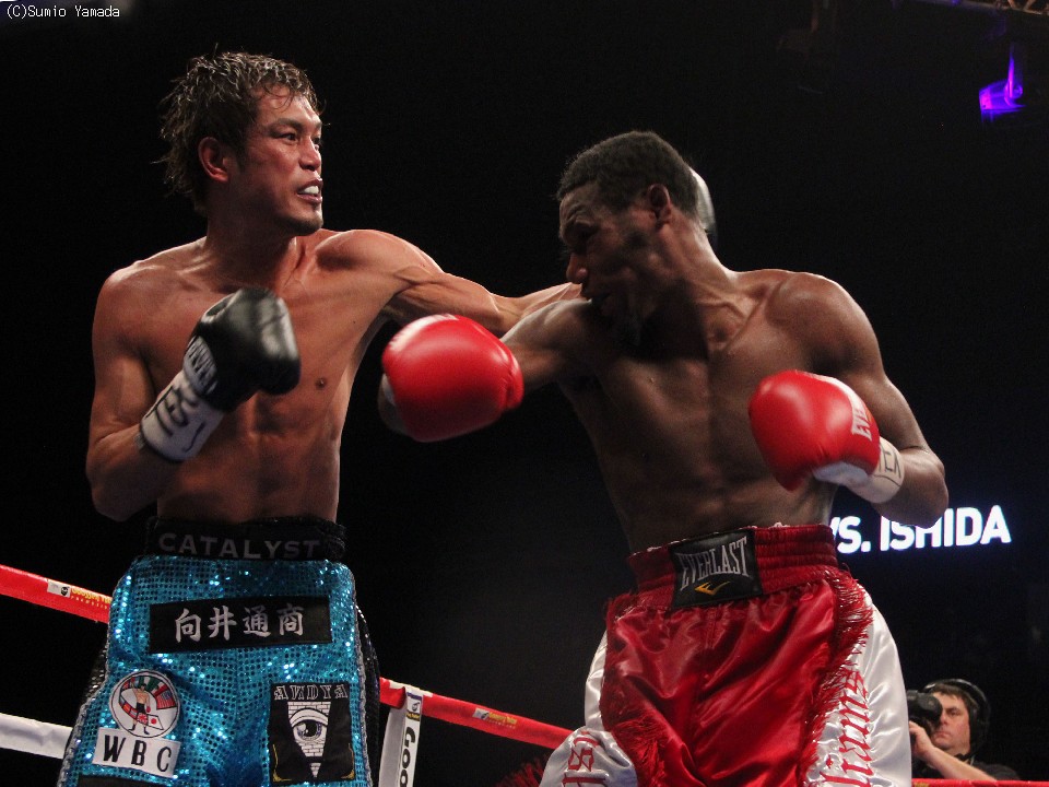 身長はほぼ同じだがリーチではウィリアムスが20センチ以上も長い。加えてサウスポーというアドバンテージがあるウィリアムスは、石田に間合いを与えずに先に先にと攻めて出た。折々に石田も応戦するが、流れを引き寄せるまでには至らない。相手のペースのなかでラウンドを重ねることになった。