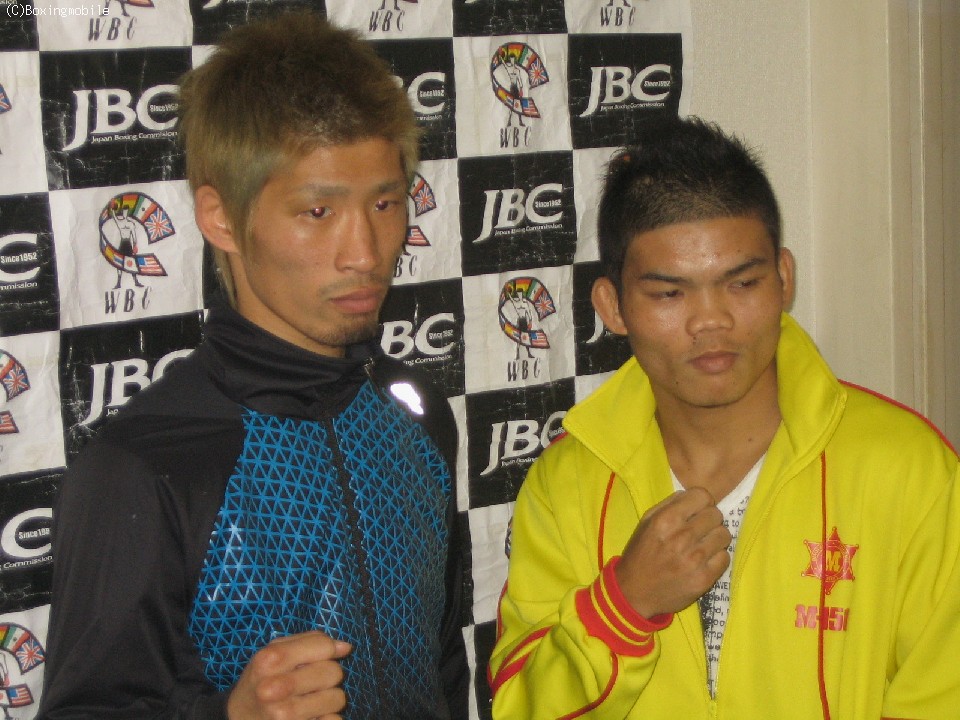 まず最初に会見を開いた王者スリヤンは、挑戦者・佐藤の印象を尋ねられ「特にこれと言って何もない(笑)。怖さもない。検診でリーチ差が18cmあるが、私には関係ない」と不敵な笑みを浮かべた。