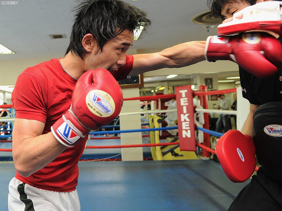 来る4月6日、東京国際フォーラムで、WBC世界バンタム級王座の初防衛戦に臨む"Lightning"山中慎介(帝拳)が29日、都内・帝拳ジムで報道陣を招き、公開スパーリングを実施した。