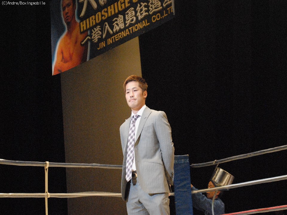 30日、OPBFフェザー級タイトル戦が行われた堺市民会館に、6月20日大阪府立体育館で日本人初となるWBC・WBA世界ミニマム級統一戦を行う井岡一翔(井岡)と、当日日本タイトルの防衛線を前座で行う宮崎亮(井岡)が揃って姿を現しリング上から挨拶をした。