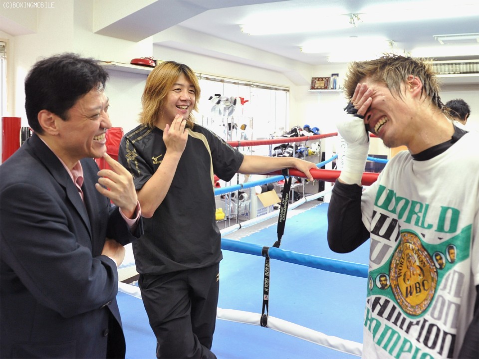 続けて、新ジムの印象を尋ねられ佐藤は「周りは"凄い使いやすい"と話していますね。僕は前のジムに愛着があったので…。それでも周囲の声を聞いて、僕も"良いジムだ!!"と思うようになりました(笑)。僕が世界チャンピオンなので、ジムの色は僕で決まってくる。これから僕が良い試合をして、新しい協栄ジムを引っ張っていきます!!」とリーダー宣言をし、改めて気持ちを引き締めた。