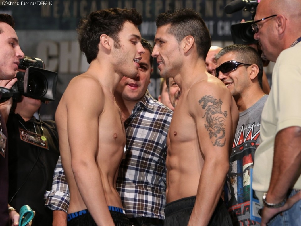 減量苦が伝えられたチャベスだが、秤の数値はリミットを2ポンド(約900グラム)割り込む158ポンド(約71.6キロ)だった。一方のマルチネスも159ポンド(約72.1キロ)でパス。あとは試合開始のゴングを待つだけとなった。