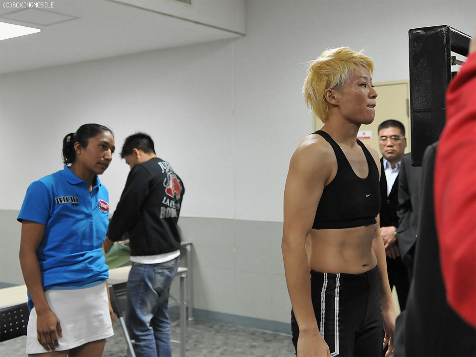 11日、"日墨豪腕対決"と注目を集めるWBA女子世界スーパーフライ級タイトルマッチの調印式と前日計量が都内で執り行われた。