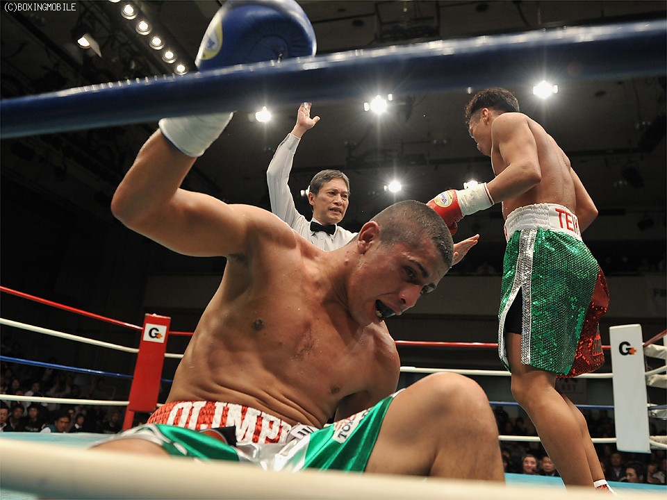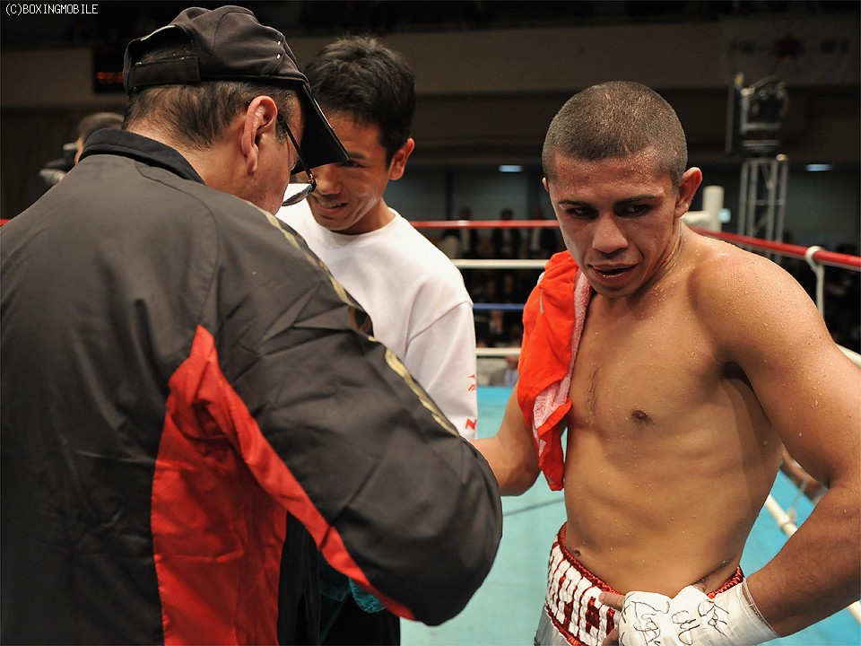 タフなメキシカンは、サウスポー下田の左ストレート、右フックをものともせずに強打を振り回したが、それも前半まで。後半は下田が完全に試合をコントールし、計3度のダウンを奪って9回TKO勝ちを治めた。