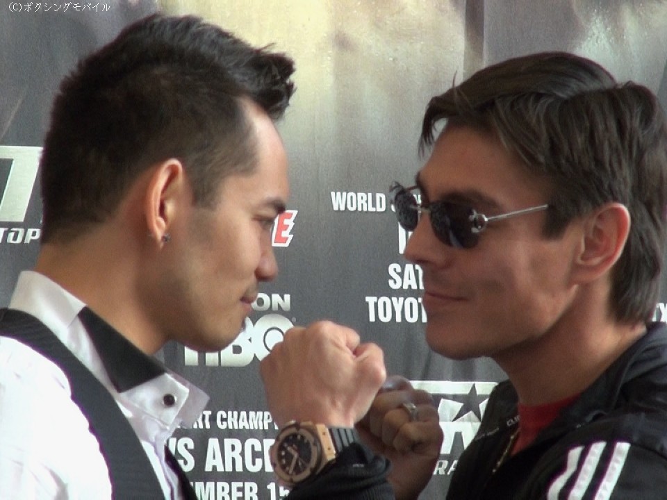 ドネア アルセ対策は、とにかくベストコンディションに仕上げるということだね。試合中何が起こるか分からないからね。いろいろなことに備えているよ。予想以上に、激しい打ち合いになるかもしれないし、タフファイトになるかもしれない。普段の試合よりもたくさんパンチを打たないといけないかもしれない。アルセ戦の戦略は内緒(笑)。