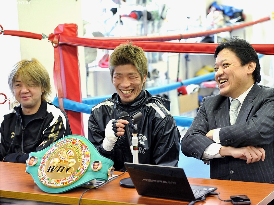金平会長と共に会見を開いた佐藤は「赤穂君に勝てて"ホッ"としています(笑)。試合自体はマダマダだし、正直言って人に観せられる内容ではない。内山さん、河野さんにインパクトで負けていた」と年末の赤穂戦を振り返ると、金平会長は「欲を言えばキリがない。内山戦と河野戦がKO決着でしたからね。それでも佐藤の試合は今後に期待を抱かせる内容だった。今月の15日にタイへ渡り、3度目の防衛戦に向けて交渉に入ります。3月中に開催を考えていますが、まずはタイ陣営のオプションを消化し、佐藤が"スーパーフライ級最強"であることを証明したい。同じ階級にチャンピオンは一人で充分でしょう!!」とオプションをクリアし、他団体との王座統一戦を示唆した。