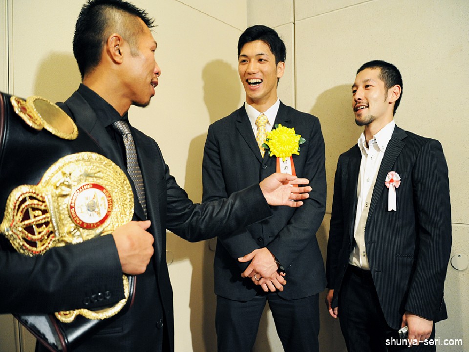 この日はプロ部門の最優秀選手に選ばれた井岡一翔(井岡)と即席のトークショーを行うなど、旧知のプロボクサーたちと、昨年の「歴史的な盛り上がり」を共感し合った村田。引く手あまたの五輪後を過ごしたためか、以前よりさらに弁が立つようになったようだ。WBA世界スーパーフェザー級王者の内山高志(ワタナベ)には「ユリオルキス・ガンボア(キューバ)とエイドリアン・ブローナー(アメリカ)しか、内山さんにとって危険な相手は、もういません。ちなみに、ガンボアなら、噛み合いはいいんじゃないですか?」と誘いかけることまでしてみせた。それに対して内山は「じゃあ(ガンボアと)試合が決まったらアマのトップ技術を教えてよ」と返し、村田も「会場がアメリカでも応援に行きます」と約束をかわした。