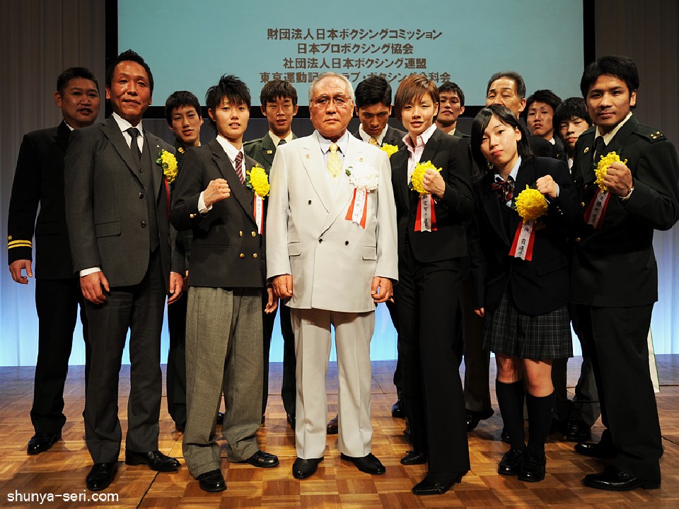 アマ部門・全受賞者と中央は山根明会長
