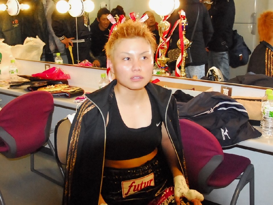 3ラウンドに見事なTKO勝利を収めた安藤は試合後、会場に応援に駆け付けたファンや後援会関係者と、勝利の喜びをひとしきり味わった後、控室に戻った安藤は笑顔で取材に応じた。