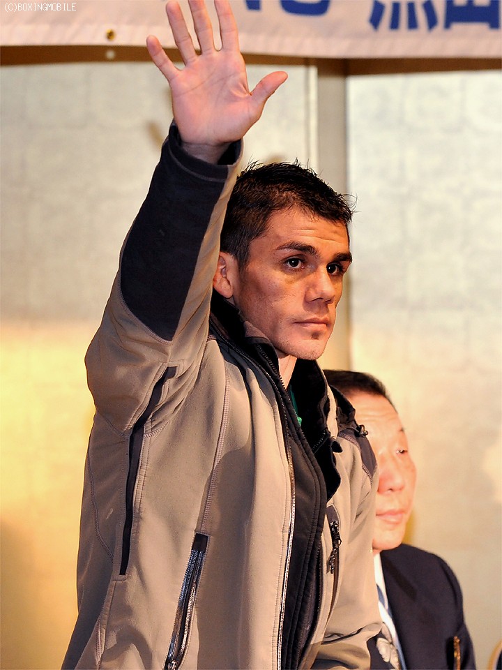 対する王者ファン・カルロス・レベコ(亜)は、1時開始の調印式に約10分遅れで姿を現し、若干減量疲れの顔をのぞかせていた。