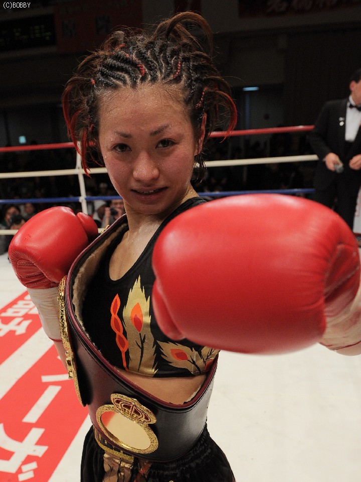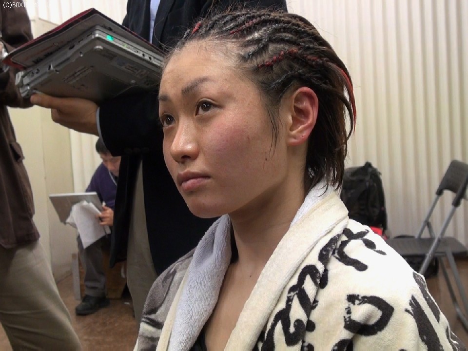 注目の"美女対決"を制し、WBA女子世界ライトミニマム級王者として勝ち名乗りを受けた宮尾が、控え室で会見を開いた。「あの戦いが自分のボクシングかと言われたら…そうじゃない!!自分に相手を倒すパンチが無いのは分かっている。手数をもっと出したり、判定で確実にポイントアウトし、誰が観ても"勝った!!"と思わせる試合をすることが王者だと思っていた。もっと出来ると過信していた部分もあったが、この試合でその考えを打ち砕かれた。色々な要素で揺らいでしまった自分の弱さがあるのかも知れない」とタイトルを守るも冷静に自分自身を見つめ直した。