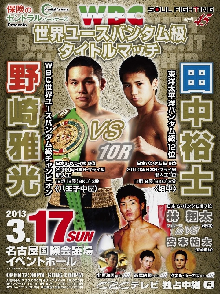 前戦で元世界王者ワンディ・シンワンチャー(タイ)を倒している田中は野崎にとって強敵だが、好勝負になるのではないだろうか。